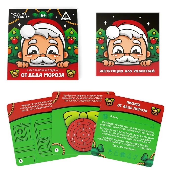 Новогодний квест по поиску подарка «Новый год: От Деда Мороза», 12 подсказок, письмо, 6+ — Характеристики