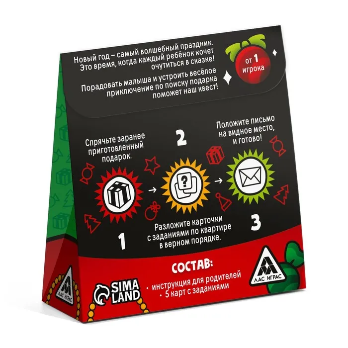 Каждый ребёнок хочет получить подарок на Новый год. С вашей помощью Дед Мороз устроит для него настоящий квест с загадками и шифрами!