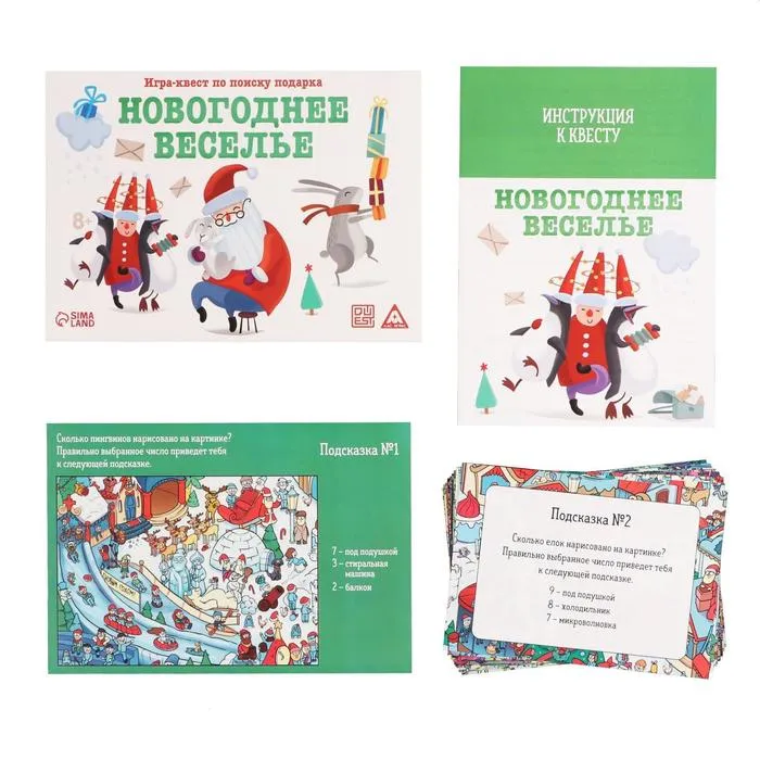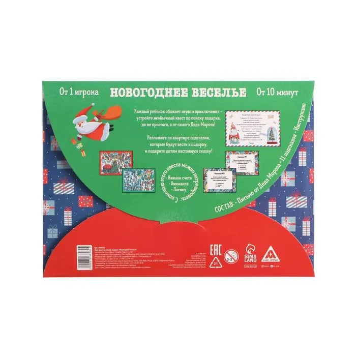 Новогодний квест по поиску подарка «Новый год: Веселье», 11 подсказок, письмо, 8+ — Характеристики