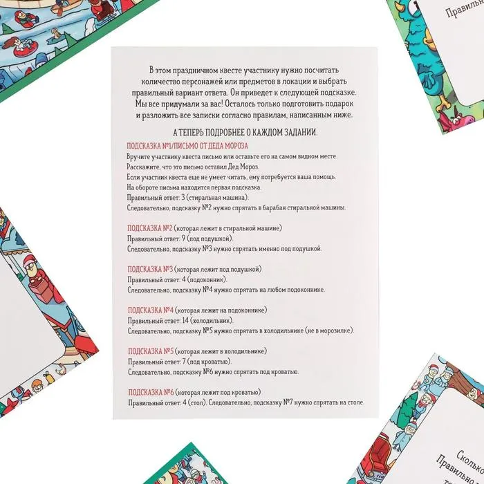 А всё, что требуется от взрослых, — это положить наводки в указанных местах квартиры и спрятать подарок, он в комплект не входит. Следуйте правилам, и увлекательное приключение для ребёнка готово!