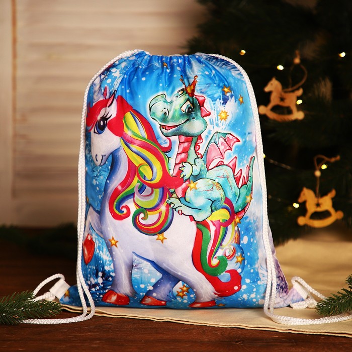 Новогодний мешок на шнурке, цвет белый/разноцветный — Характеристики