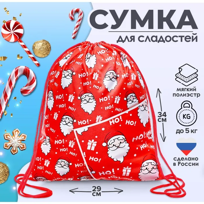 Новогодний мешок под сладости 290×340 мм Ho-Ho, мягкий полиэстер плотностью 210D — Характеристики