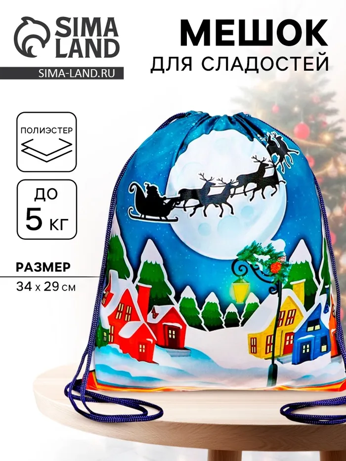 Новогодний мешок под сладости 290×340 мм «Новогодний пейзаж», полиэстер плотностью 210D — Характеристики