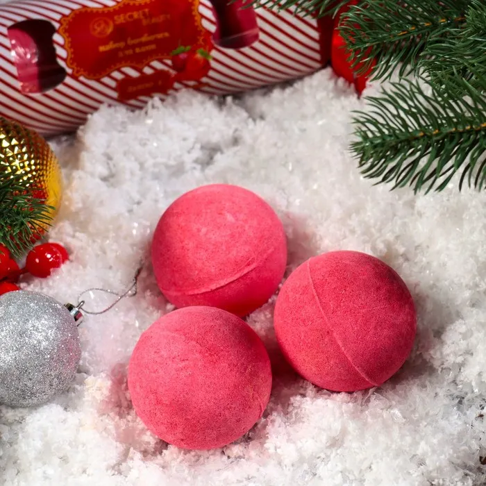 Новогодний набор бомбочек для ванны «Красная конфета», красный, 3 шт по 100 гр. - это идеальное дополнение для создания волшебной атмосферы во время праздничного сезона.