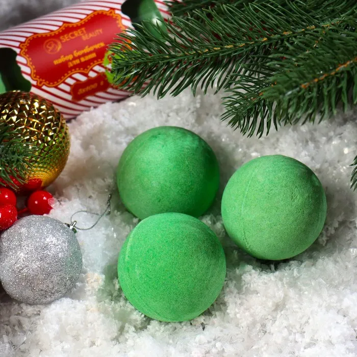 Новогодний набор бомбочек для ванны «Красная конфета», зелёный, 3 шт по 100 гр. - это идеальное дополнение для создания волшебной атмосферы во время праздничного сезона.