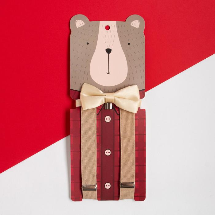 Новогодний набор для мальчика KAFTAN «Медведь» подтяжки и галстук-бабочка, р-р 75 см, полиэстер — Характеристики