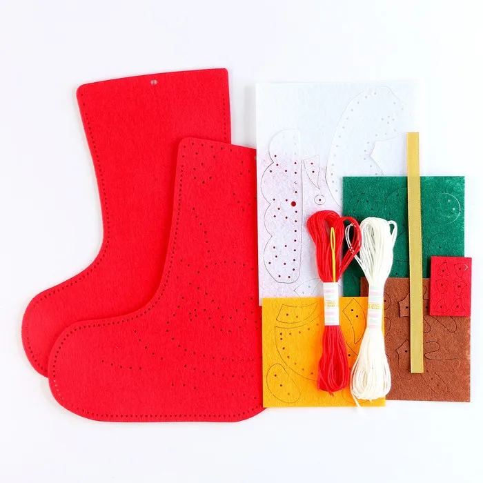 Этот набор для шитья перенесёт вас в мастерскую Деда Мороза и поможет создать носок из фетра, который украсит интерьер или станет оригинальным подарком для близкого человека.