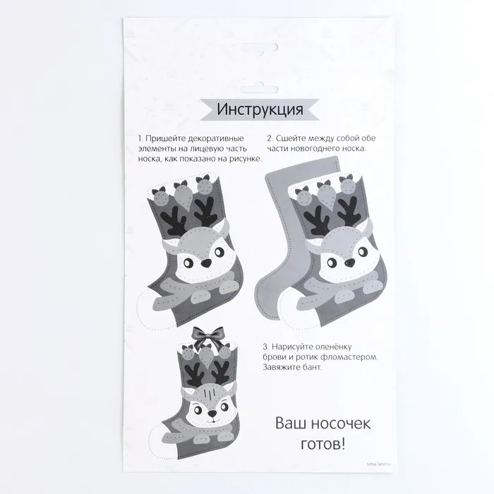 Новогодний набор для шитья. Носок из фетра «Новый год! Олененок», 18×27 см — Характеристики