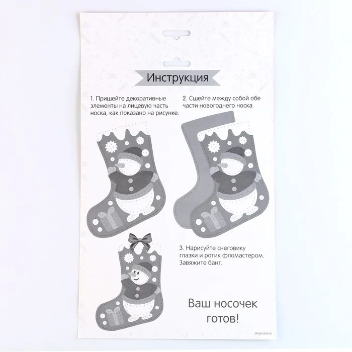 Новогодний набор для шитья. Носок из фетра «Новый год! Снеговичок», 18×27 см — Характеристики