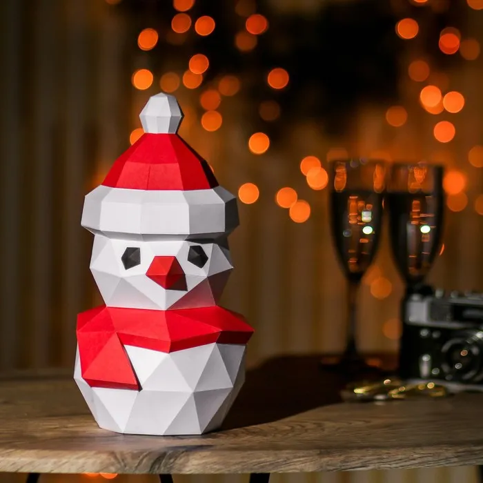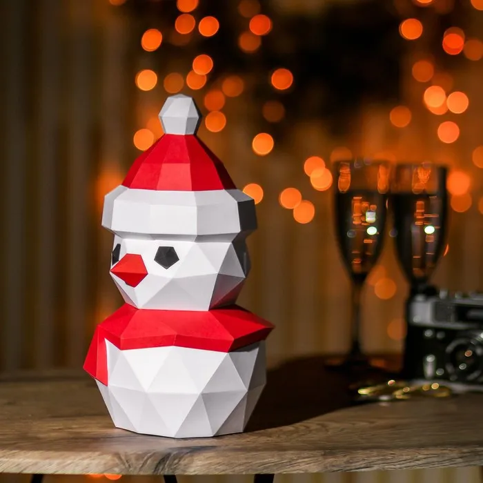 Можно искать схемы в интернете, а можно воспользоваться готовым набором. Следуя инструкции на листах бумаги вы легко соберёте снеговика и украсите им свой дом.