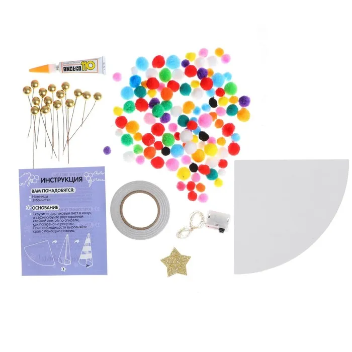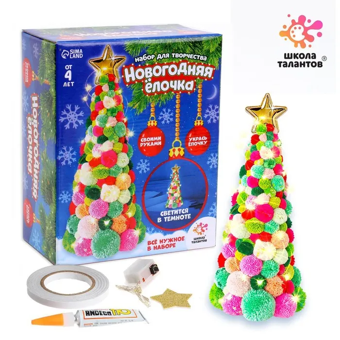 Новогодний набор для творчества «Ёлочка из цветных шариков», светиться в темноте — Характеристики