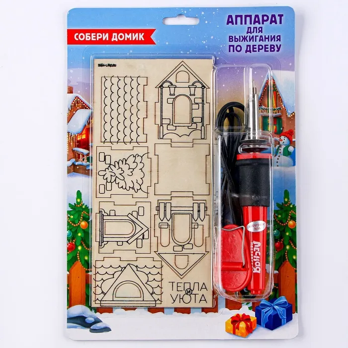 Набор для выжигания по дереву «Новый год! Собери домик» будет идеальным подарком для ребёнка или подростка на Новый год!