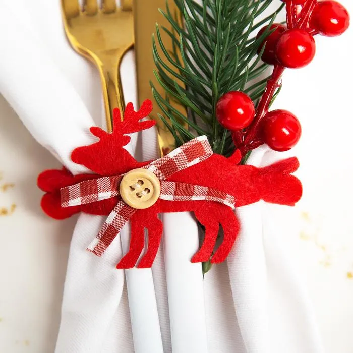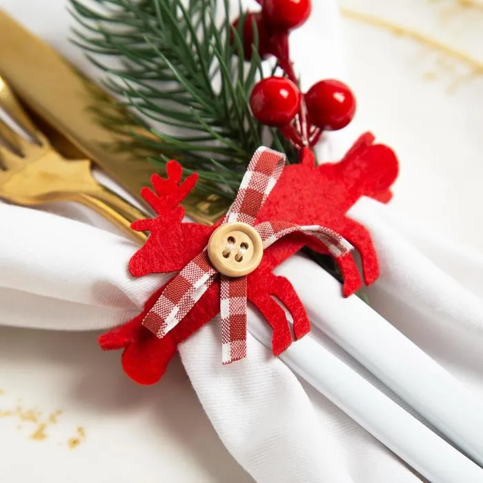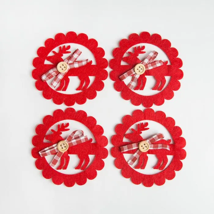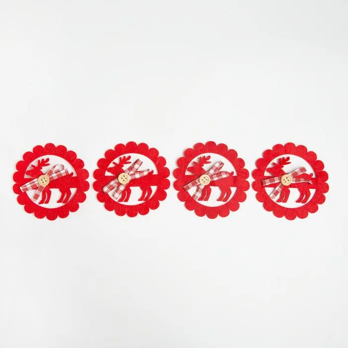 Набор декоративных колец для салфеток «Новогодний олень» 4 шт, d=5 см, 100% п/э, фетр