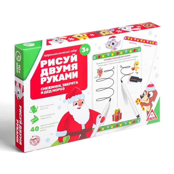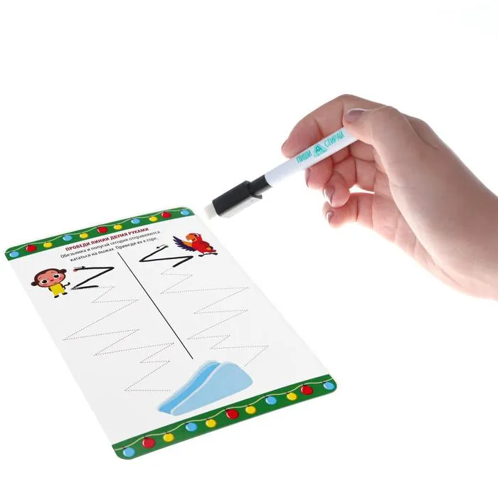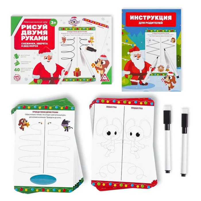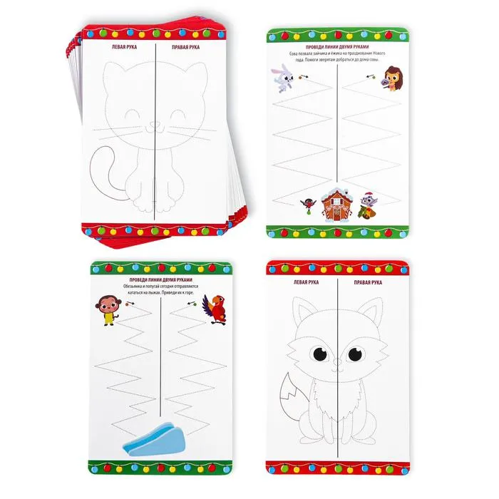 Одновременное выполнение заданий двумя руками поможет развить творческое и техническое мышление, а ещё натренировать запястье и подготовить руку к письму. Специальный новогодний выпуск позволит ребёнку провести время с пользой и создаст новогоднее настроение.