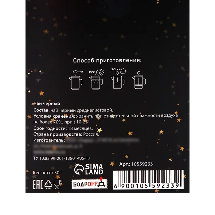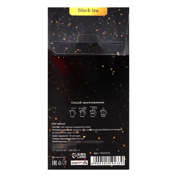 Каждая чашка этого чая идеально дополнит ваши новогодние угощения и станет отличным компаньоном к сладостям, а также дружеским встречам с близкими. Поделитесь этой незабываемой чайной традицией и создайте особую атмосферу в кругу родных, наслаждаясь каждым глотком. "Золотая ёлка" — это не просто чай, это приглашение в мир сказки и волшебства, которое будет сопровождать вас в течение всего праздника и за его пределами. Позвольте себе окунуться в магию зимы с чашкой этого чудесного чая!