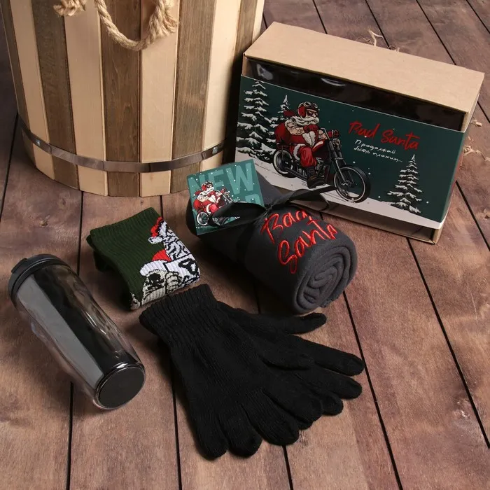 Новогодний подарочный набор "Bad Santa" плед, носки, перчатки, термостакан — Характеристики
