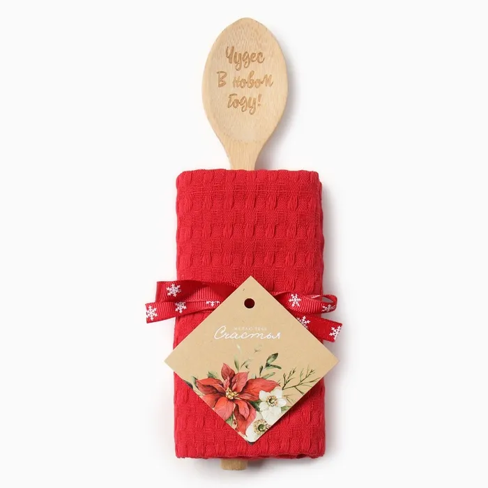 Новогодний подарочный набор Доляна "Чудес в новом году": бордовое полотеце 35х60см, хл 100%, вафля 220г/м2 — Характеристики