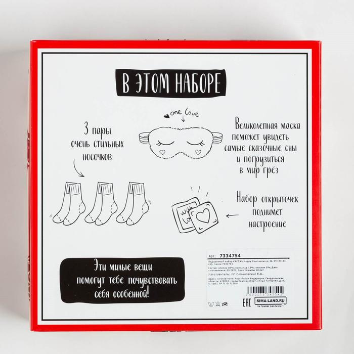 Новогодний подарочный набор KAFTAN Happy Year носки размер 36-39 (23-25 см), маска — Характеристики