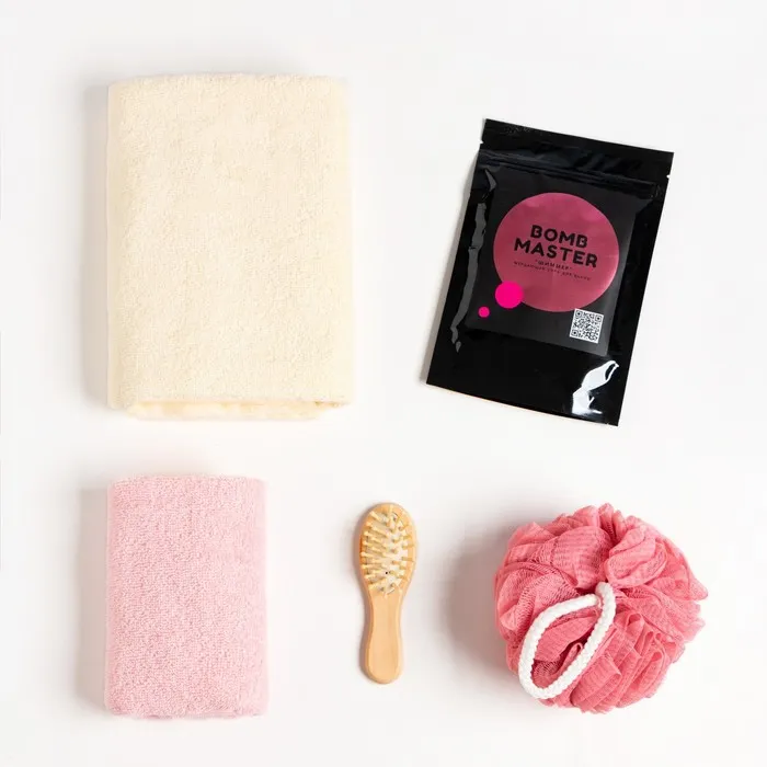 Новогодний подарочный набор "Хэппи нью йеар" полотенце 50х90см,30х60см и аксессуары (5 предмета) — Характеристики