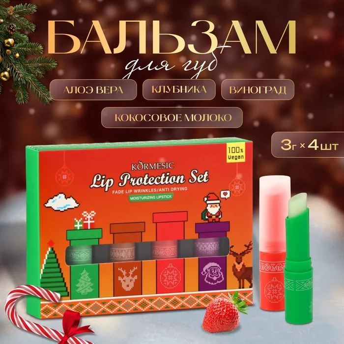 Набор бальзамов для губ с разнообразными ароматами и ингредиентами — это отличный способ обеспечить уход за губами в любое время года, особенно в зимние месяцы. Включение таких ингредиентов, как алоэ вера, кокосовое молоко, клубника и виноград, делает этот набор особенно полезным и приятным в использовании.