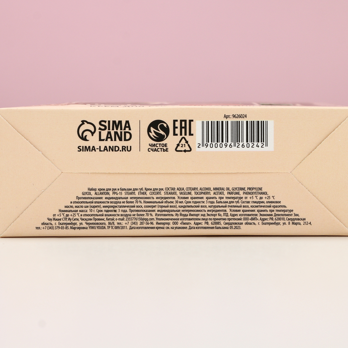 Новогодний подарочный набор косметики «Чудес!»: крем для рук 30 мл и бальзам для губ 10 г, Чистое счастье — Характеристики
