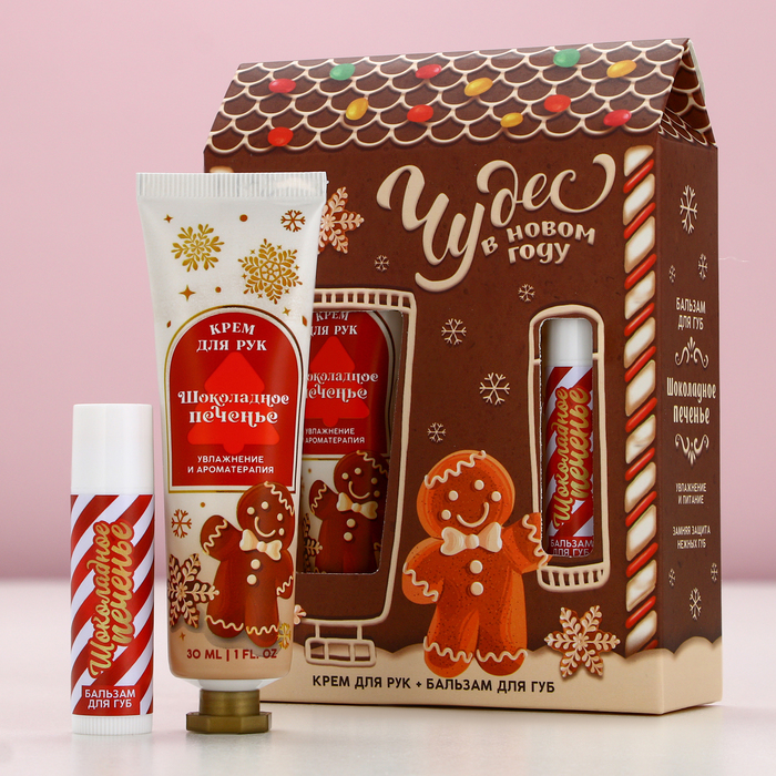 Новогодний подарочный набор косметики «Чудес!»: крем для рук 30 мл и бальзам для губ 10 г, Чистое счастье