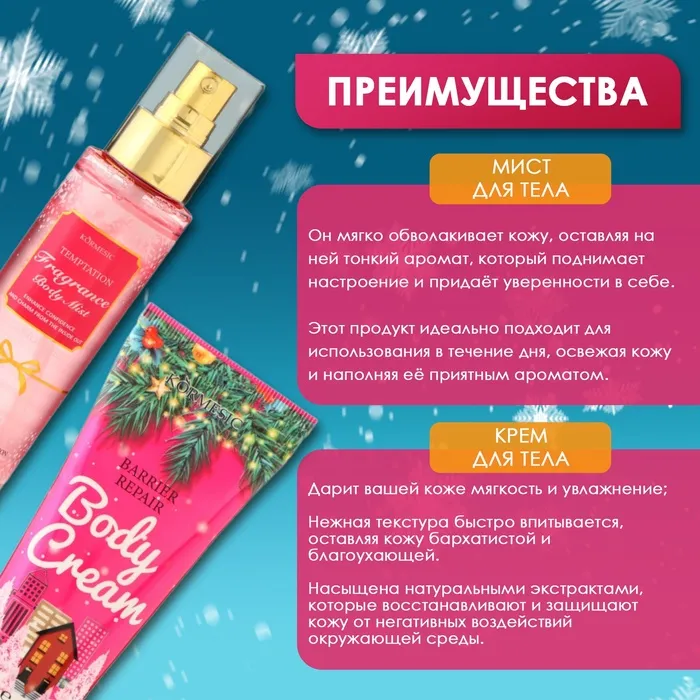 Новогодний подарочный набор косметики «Искушение»: крем для тела, 100 мл + мист для тела, 120 мл — Характеристики