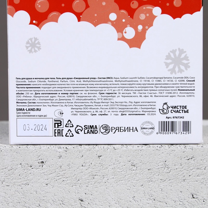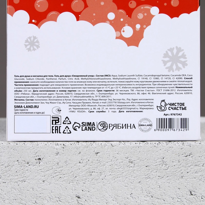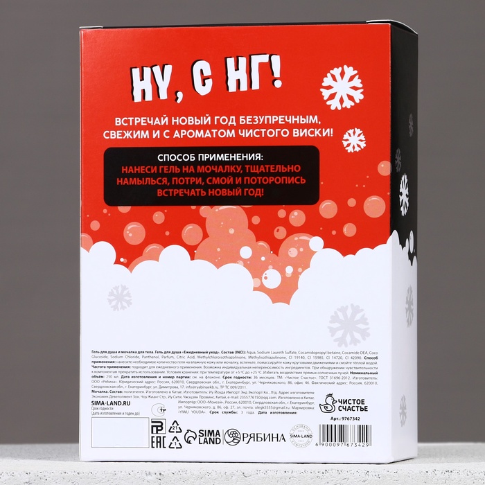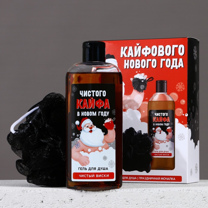 Новогодний подарочный набор косметики «Кайфового Нового года»: гель для душа 250 мл и мочалка для тела, Чистое счастье — Характеристики