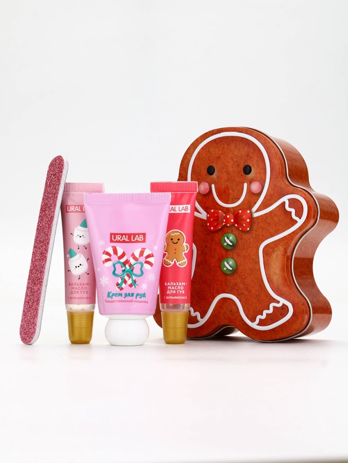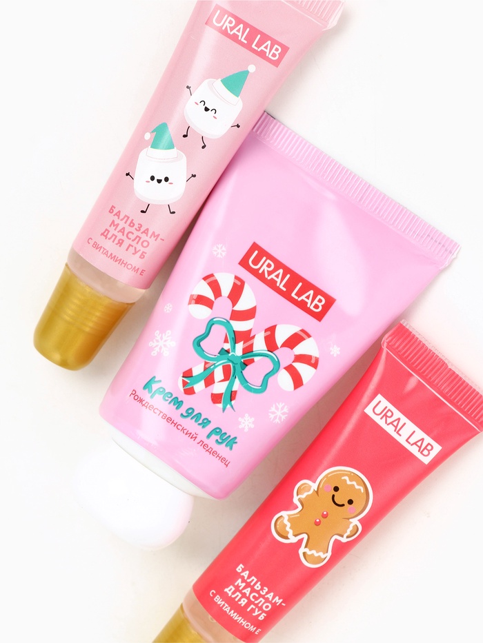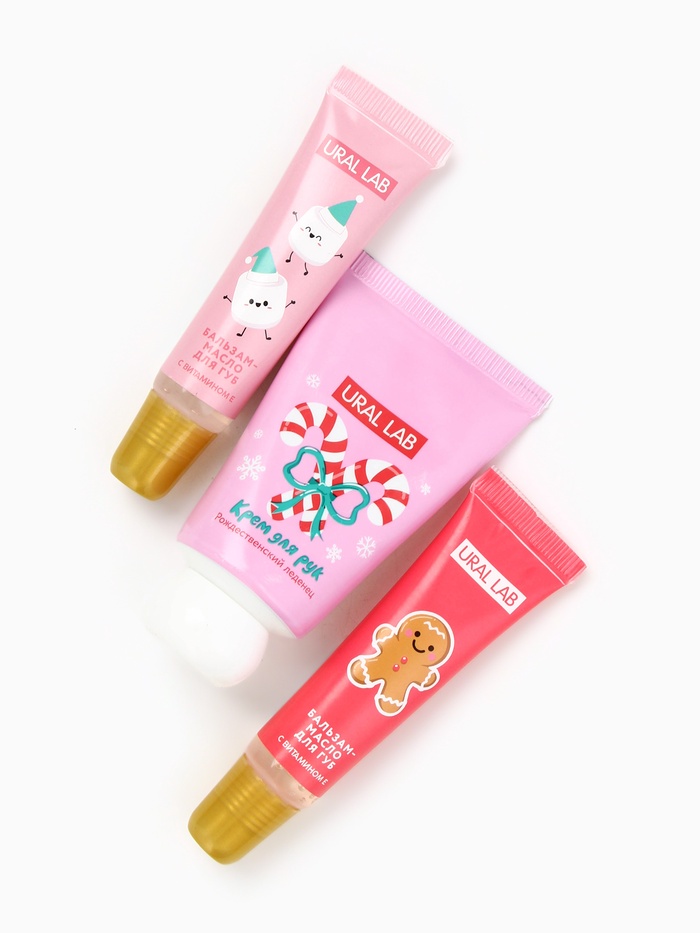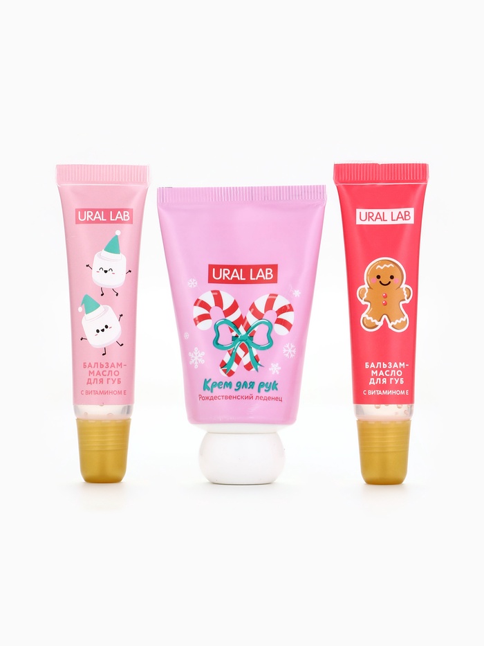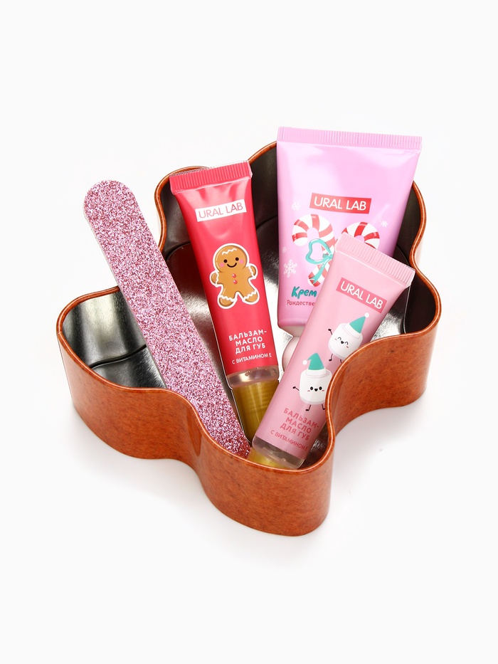 Новогодний подарочный набор косметики: крем для рук, бальзам для губ, пилочка для ногтей, URAL LAB — Характеристики