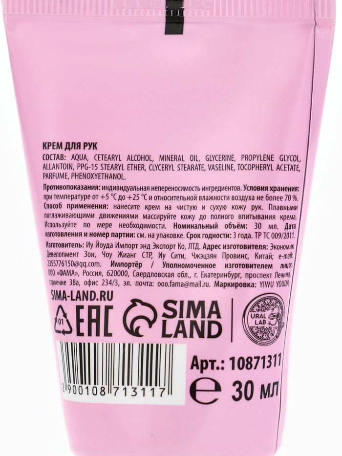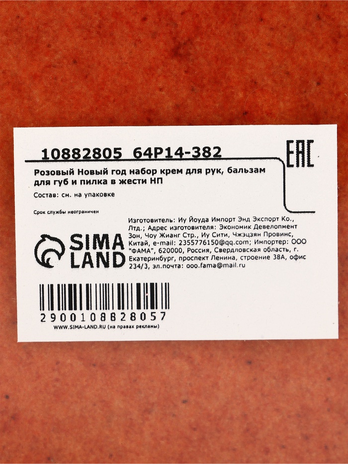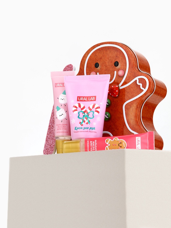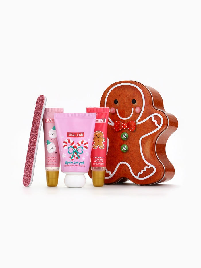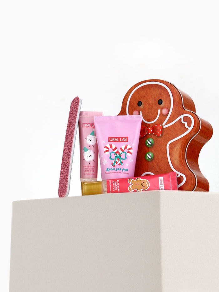 Новогодний подарочный набор косметики: крем для рук, бальзам для губ, пилочка для ногтей, URAL LAB — Характеристики