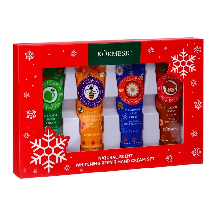 Новогодний подарочный набор косметики. Крема для рук по 30 мл, 4 шт (яблоко, мёд, ромашка, аргановое масло) — Характеристики