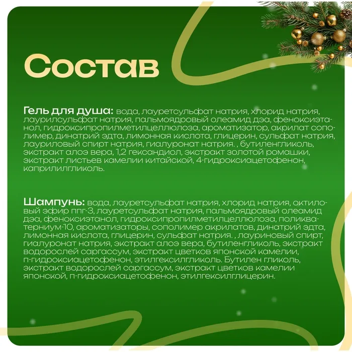 - Гель для душа с ароматом, 100 мл — мягко очищает кожу, даря ей свежесть и приятный аромат, который наполняет ванную атмосферой праздника.