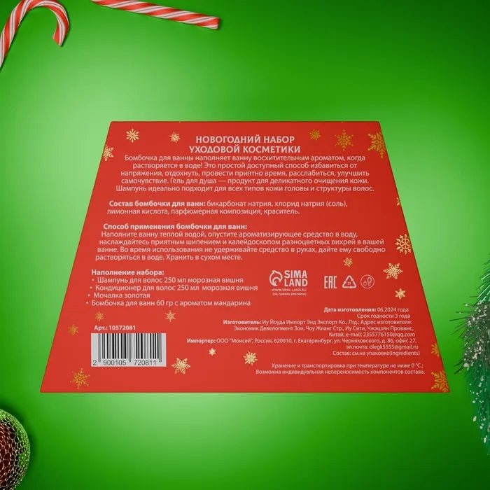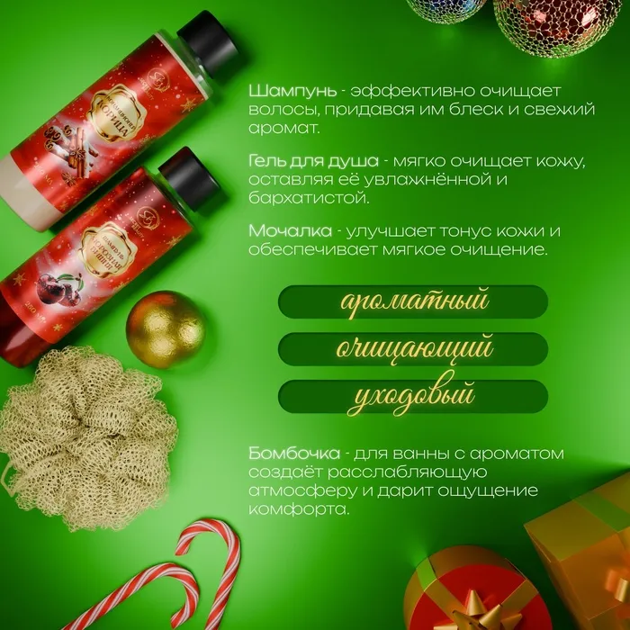 Новогодний подарочный набор косметики «Новогодние чудеса», с ароматом вишни и корицы. Красная серия. — Характеристики