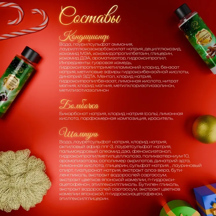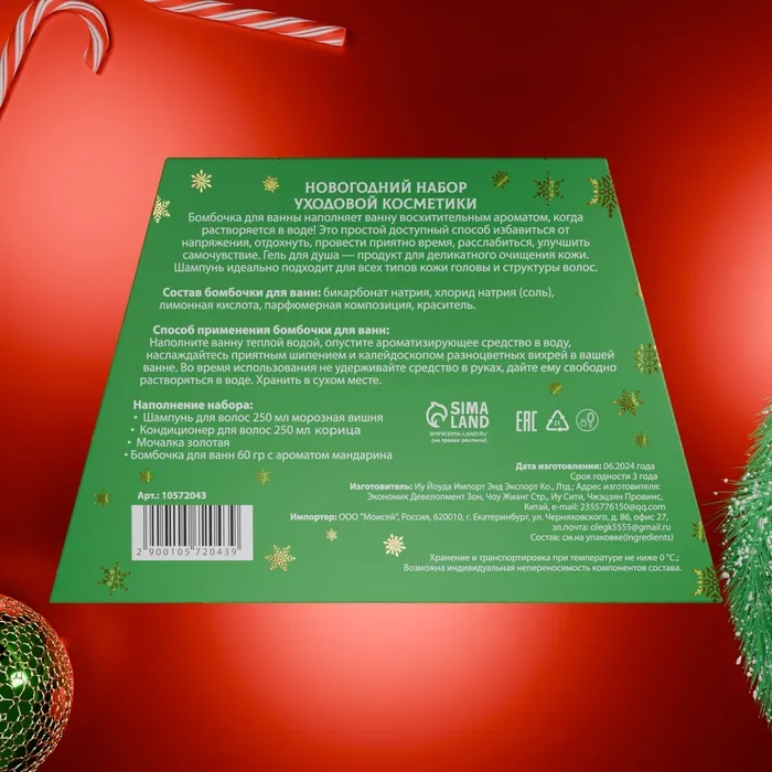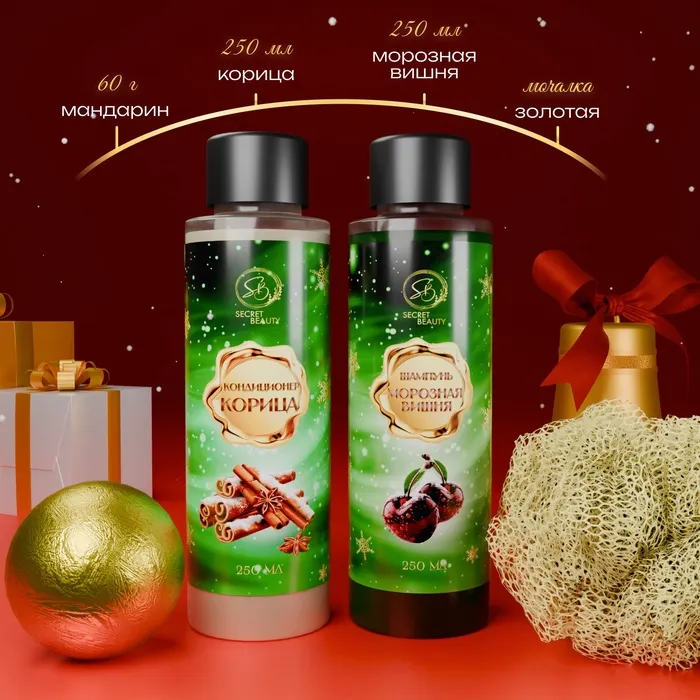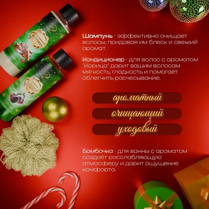 Новогодний подарочный набор косметики «Новогодние чудеса», с ароматом вишни и корицы. Зеленая серия. — Характеристики
