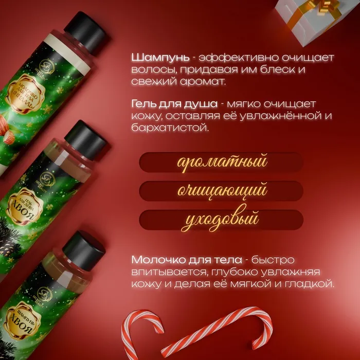 Этот набор станет отличным новогодним подарком, который подойдет как для мужчин, так и для женщин. Он обеспечит полный уход за кожей и волосами, оставляя приятное послевкусие аромата. Прекрасно подходит для зимнего ухода и создания уюта в холодные дни, а также станет отличным аксессуаром для новогодних праздников.