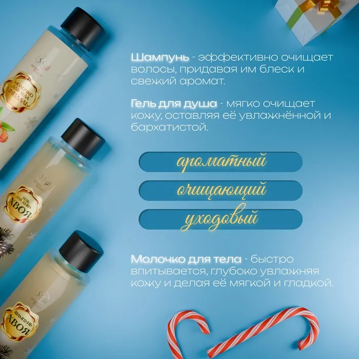Этот набор станет отличным новогодним подарком, который подойдет как для мужчин, так и для женщин. Он обеспечит полный уход за кожей и волосами, оставляя приятное послевкусие аромата. Прекрасно подходит для зимнего ухода и создания уюта в холодные дни, а также станет отличным аксессуаром для новогодних праздников.