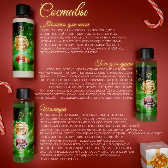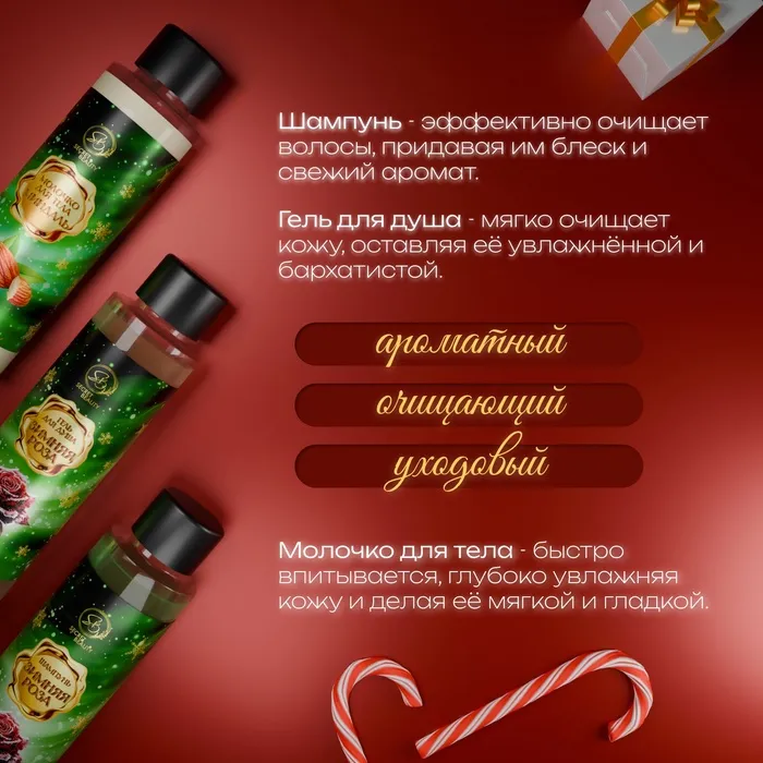 Этот набор станет отличным новогодним подарком, который подойдет как для мужчин, так и для женщин. Он обеспечит полный уход за кожей и волосами, оставляя приятное послевкусие аромата. Прекрасно подходит для зимнего ухода и создания уюта в холодные дни, а также станет отличным аксессуаром для новогодних праздников.