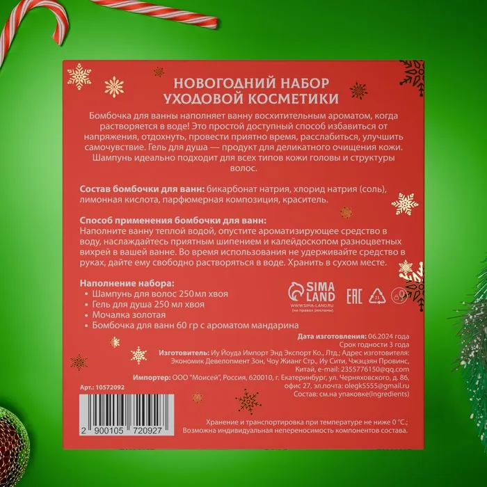 Новогодний подарочный набор косметики «Снежное царство», с ароматом хвои и корицы. Красная серия — Характеристики