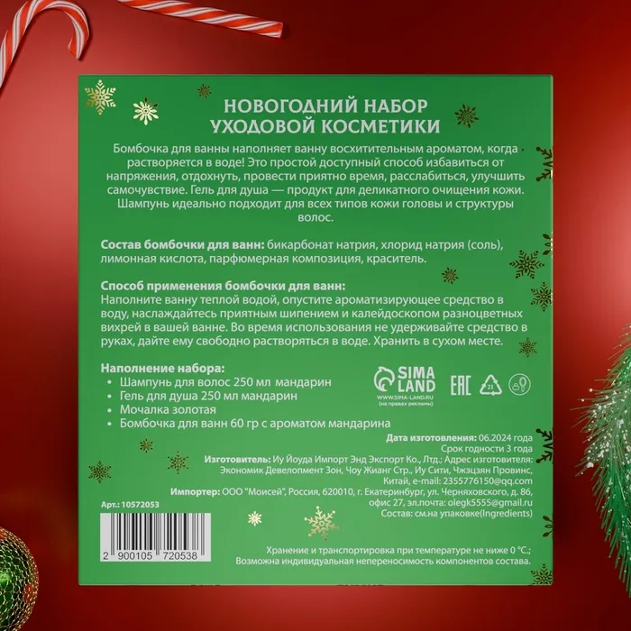Новогодний подарочный набор косметики «Снежное царство», с ароматом мандарина и корицы. Зеленая серия — Характеристики