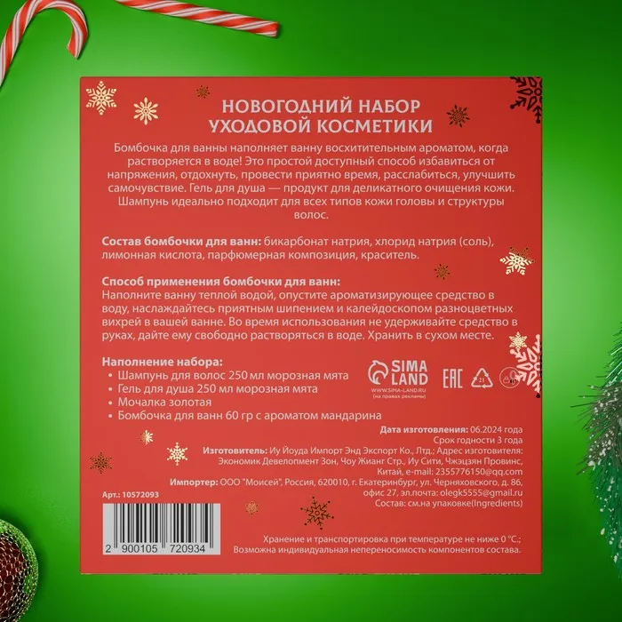 Новогодний подарочный набор косметики «Снежное царство», с ароматом мяты и корицы. Красная серия — Характеристики