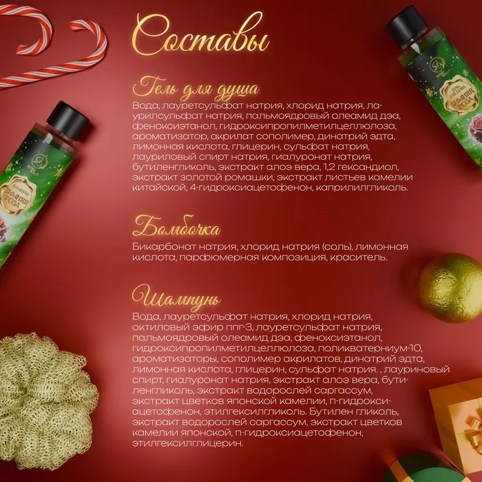 Новогодний набор — это идеальное сочетание продуктов для полноценного ухода за телом, которые дарят ощущение роскоши и заботы. Он идеально подойдёт как подарок на Новый год, который подчеркнёт ваше внимание и любовь к близким.