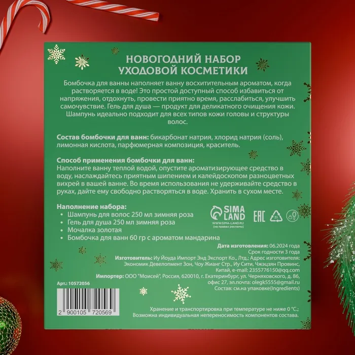 Новогодний подарочный набор косметики «Снежное царство», с ароматом розы и корицы. Зеленая серия — Характеристики