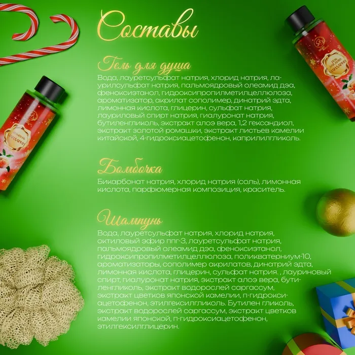 Новогодний подарочный набор косметики «Вера в чудеса», с ароматом мандарина и корицы. Красная серия — Характеристики