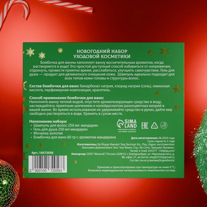 Новогодний подарочный набор косметики «Вера в чудеса», с ароматом мандарина и корицы. Зеленая серия. — Характеристики