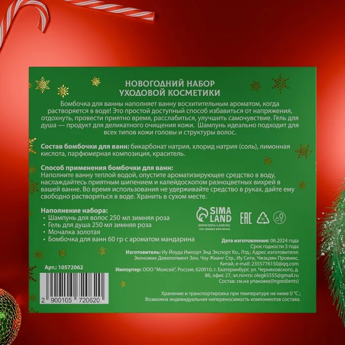 Новогодний подарочный набор косметики «Вера в чудеса», с ароматом розы и корицы. Зеленая серия — Характеристики