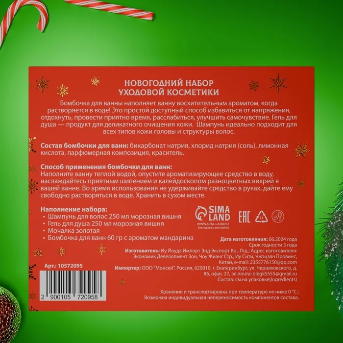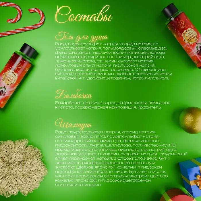 Новогодний подарочный набор косметики «Вера в чудеса», с ароматом вишни и корицы. Красная серия — Характеристики
