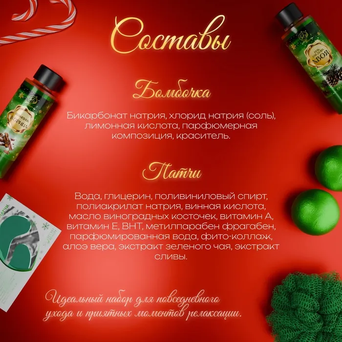 Этот набор — отличный подарок на Новый год, который подойдет для любого человека. Подарите своему близкому уникальный момент ухода и уюта в этот праздник!