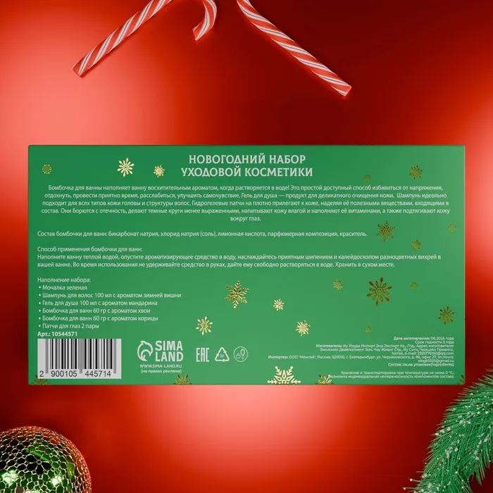 Новогодний подарочный набор косметики «Зимнее путешествие» для душа и ванны, зеленая серия — Характеристики