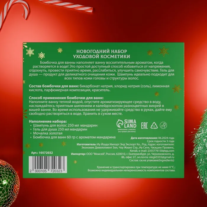 Новогодний подарочный набор косметики «Зимняя сказка», с ароматом мандарина и корицы. Зеленая серия. — Характеристики