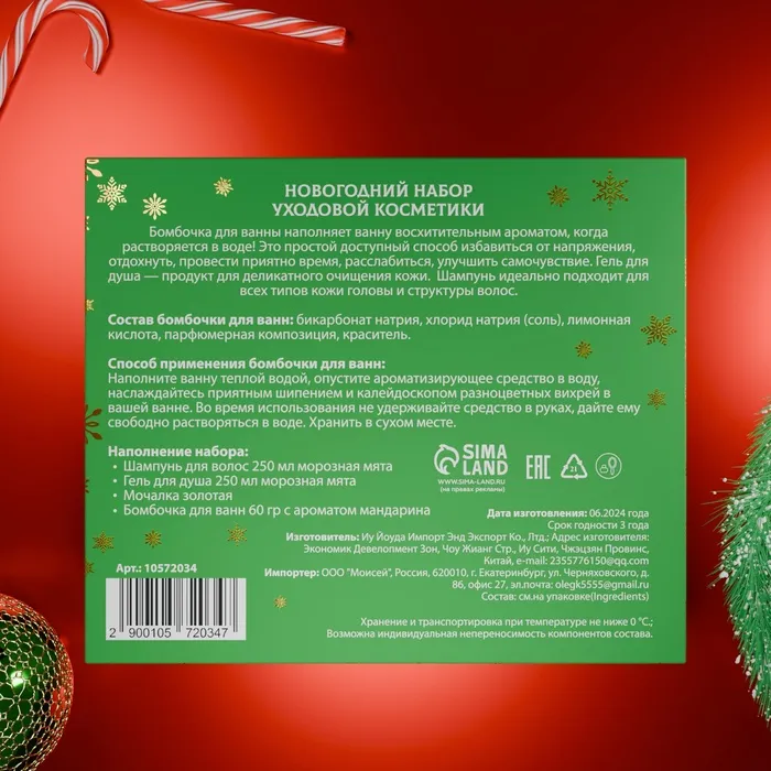 Новогодний подарочный набор косметики «Зимняя сказка», с ароматом мяты и корицы. Зеленая серия. — Характеристики